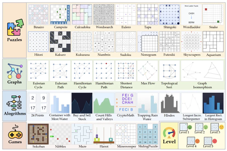 MM-HELIX 基准测试构建了包含 42 类跨领域任务的 “终极考场”,覆盖算法设计、图论分析、策略博弈等高难度场景。例如: